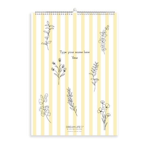 A3 Family Calendar - Floral Stripe - Butter