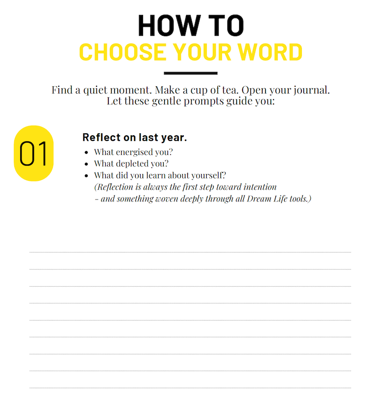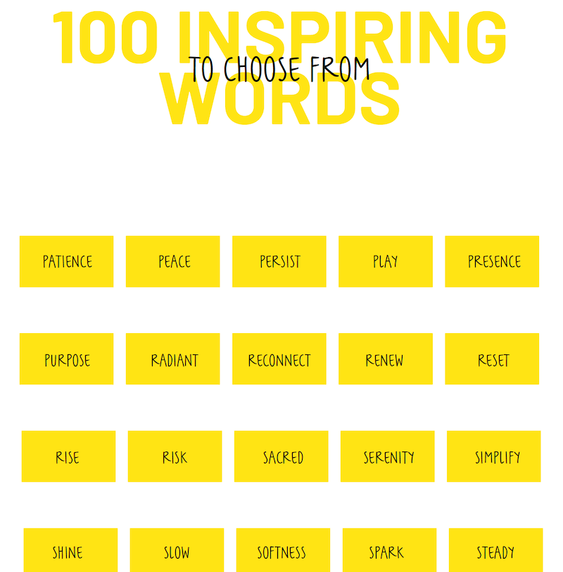 I choose a word that feels right for me. Don’t overthink it, just choose a word that talks to you. If you’re not sure, try it, you can always change.